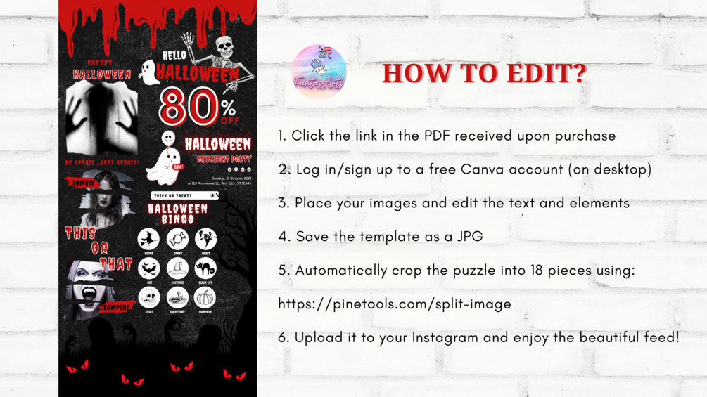 Creepy Halloween Instagram Puzzle Feed Canva Template