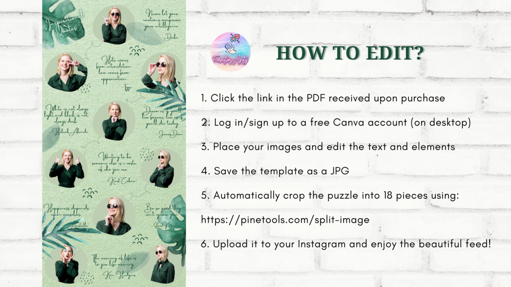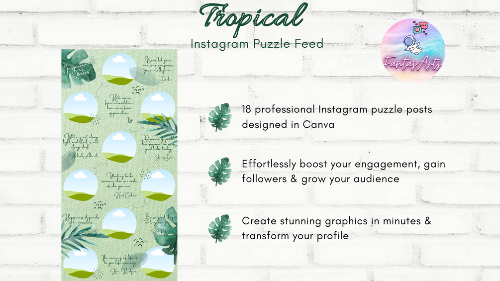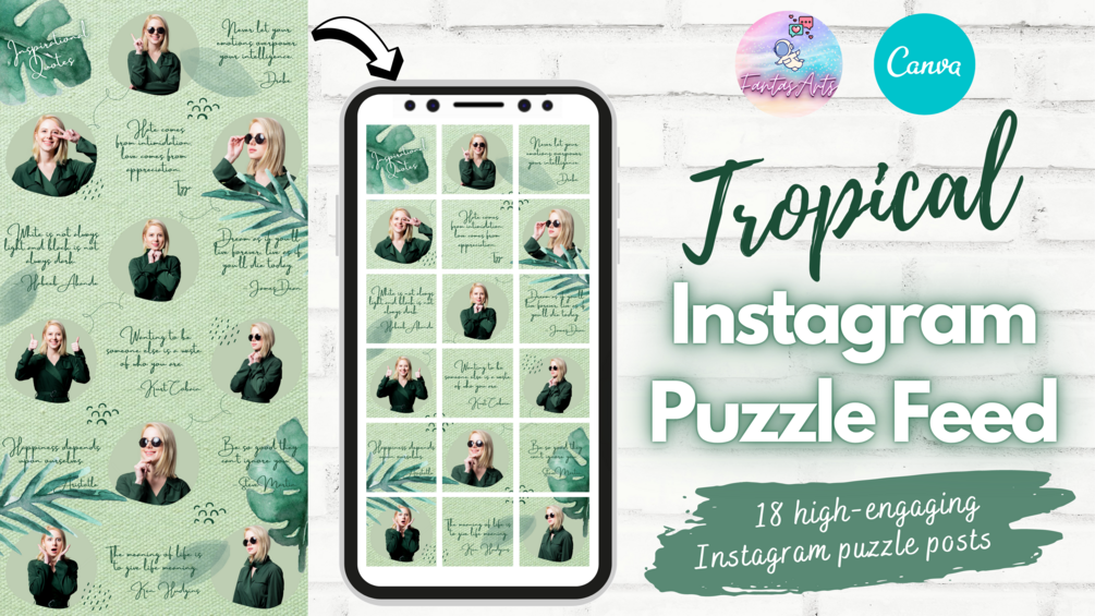 Tropical Green Instagram Puzzle Feed Canva Template
