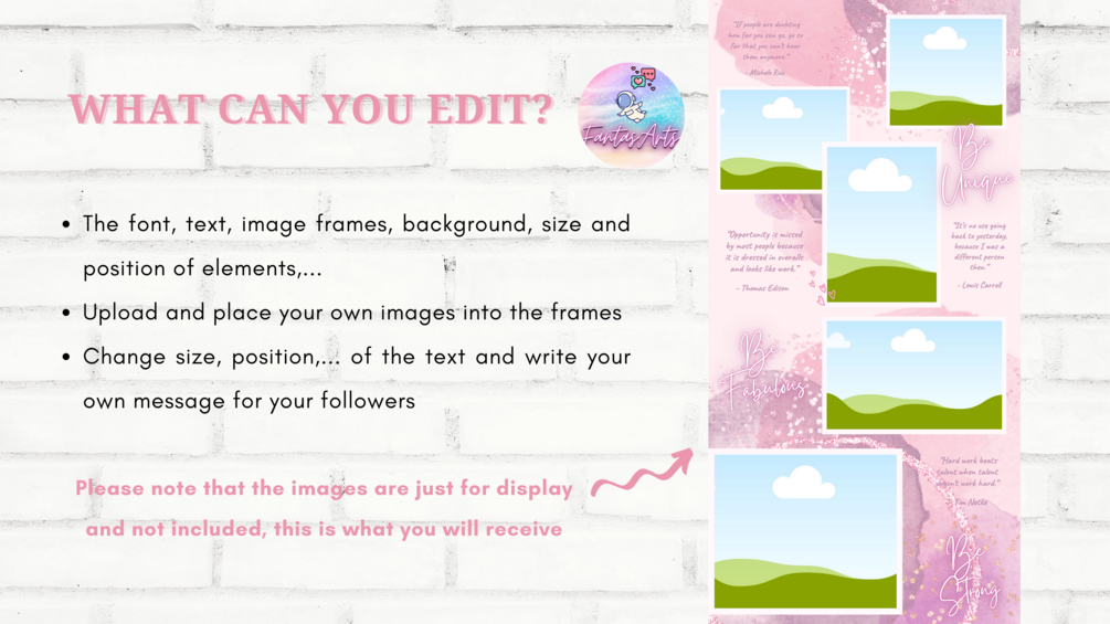 ☾ All templates are fully designed in Canva WITHOUT graphic design experience. All you need to do is basic Canva knowledge. You can just drag & drop your image, change the font, or change the word as easy as pie.