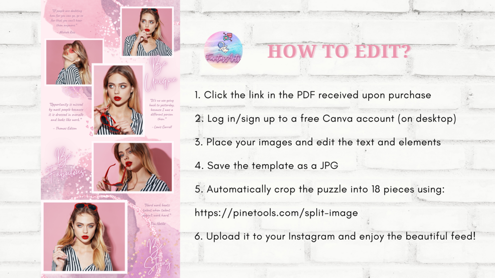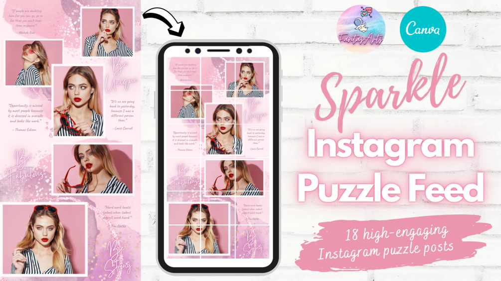 Sparkle Pink Instagram Puzzle Feed Canva Template